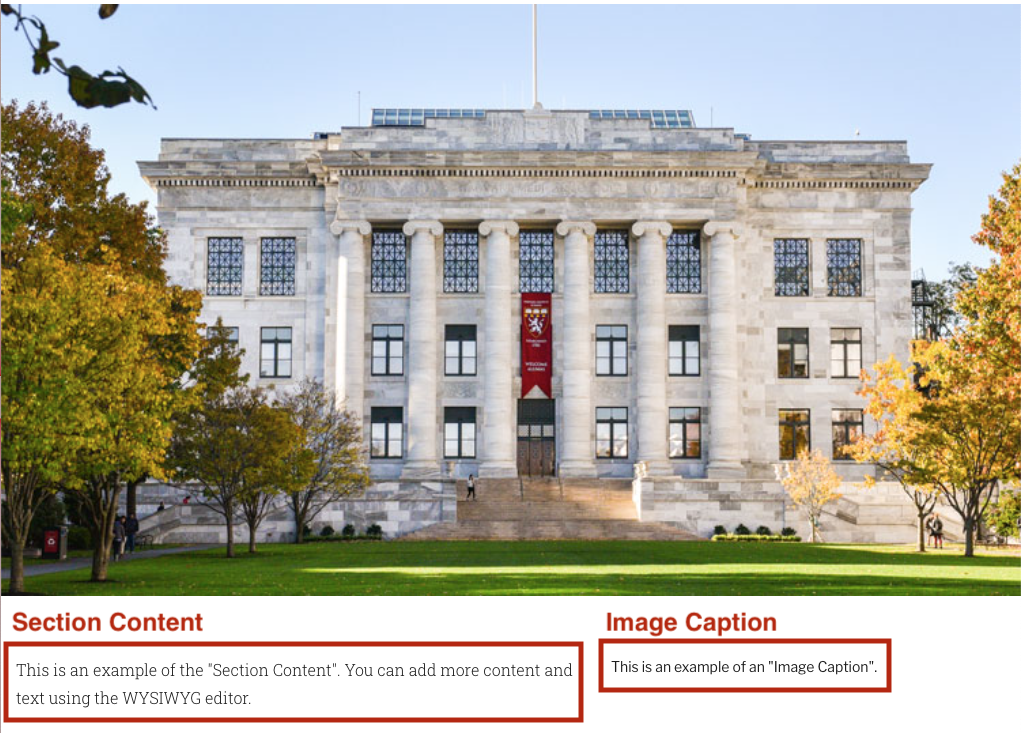 - Section Content - If desired, add a longer description to provide more information. This will appear as medium-sized text at the bottom left of the image.