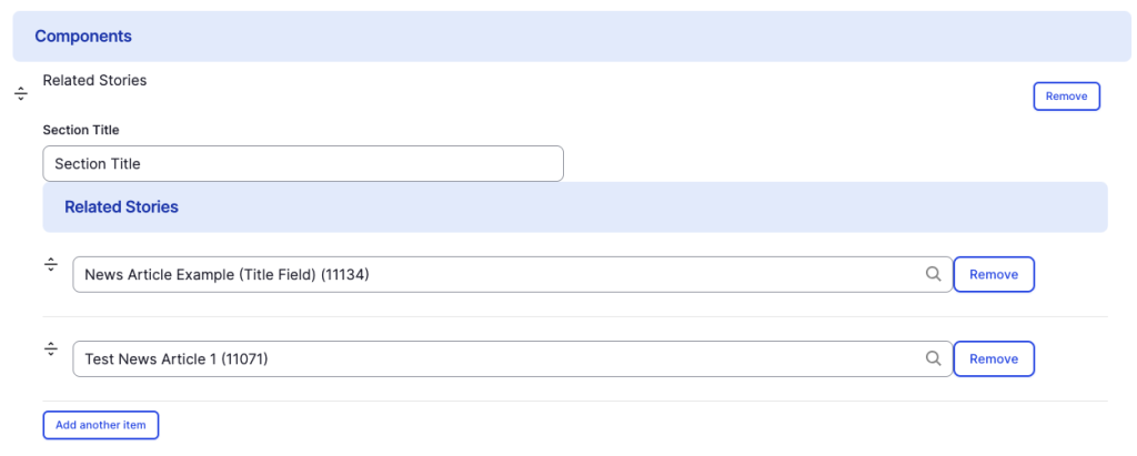 This guide demonstrates how to connect a related story to your site using the Related Stories component.