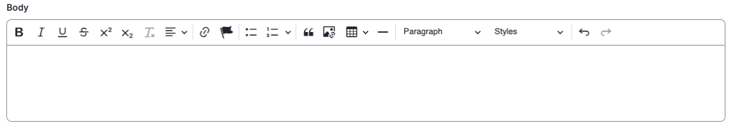 - Body - Use the WYSIWYG editor to construct the body of the text.