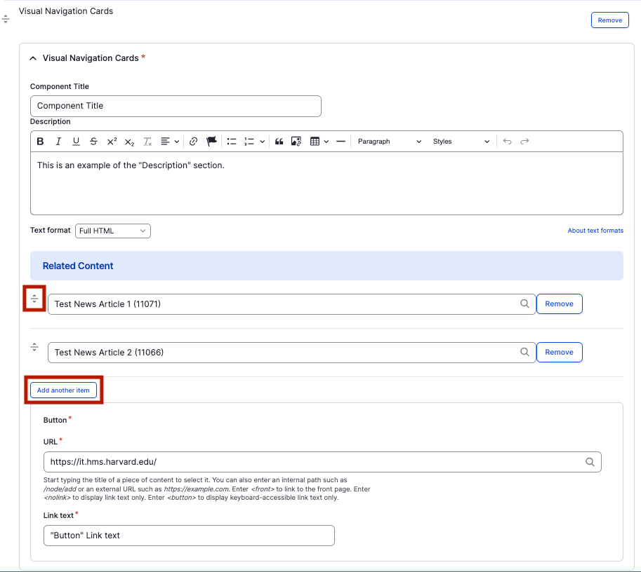 - To add another text navigation card, select Add Text Navigation with Image Cards Item.